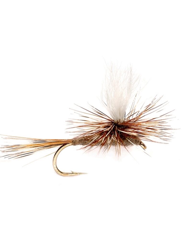 The classic Adams dry pattern tied parachute style. White post aids visibility for low light and rough water, and the parachute flies float very well. An absolute must have fly! Imitates many early season mayfly hatches, but also works as an attractor when fish shy away from brighter offerings. A parachute style fly, although can be used in rough water, is more known for smooth, flat water. These ride a bit lower on the water than the standard hackled version and therefore create a more lifelike sillhouette.