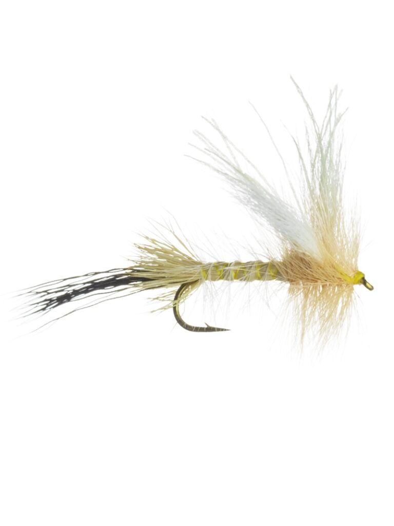 Deer body and tail with short hackle through the body and fairly heavily hackled up front. We dare you to try and sink this fly. A giant fly but still light enough not to twist the crap out of your tippet.