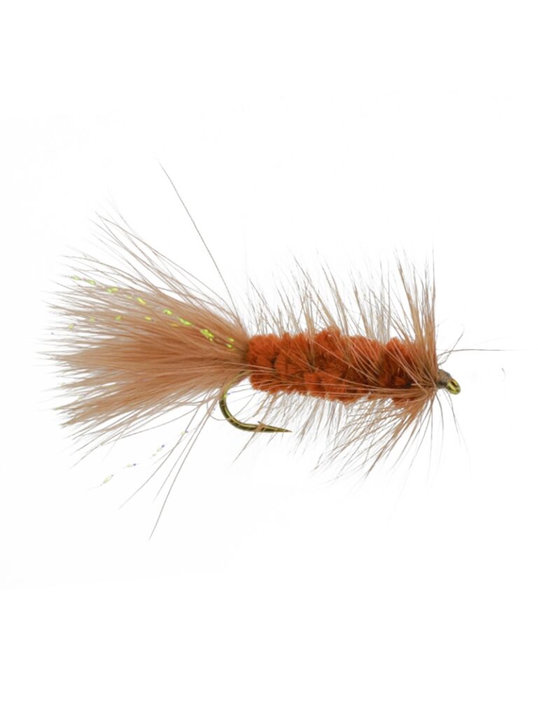 A standard Wooly Bugger here in the Brown color. Needs no introduction. The most popular, the most successful, the most often tied, the “mostest” of all flies….the Wooly Bugger. All trout, bass, panfish, and steelhead anglers need this fly in their box. Also a no brainer for anglers getting started, you can’t fish it wrong.